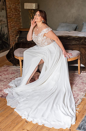 Nos robes sont confectionnées sur mesure et retouchées par des professionnels passionnés, garantissant une finition impeccable et un ajustement parfait pour chaque mariée.